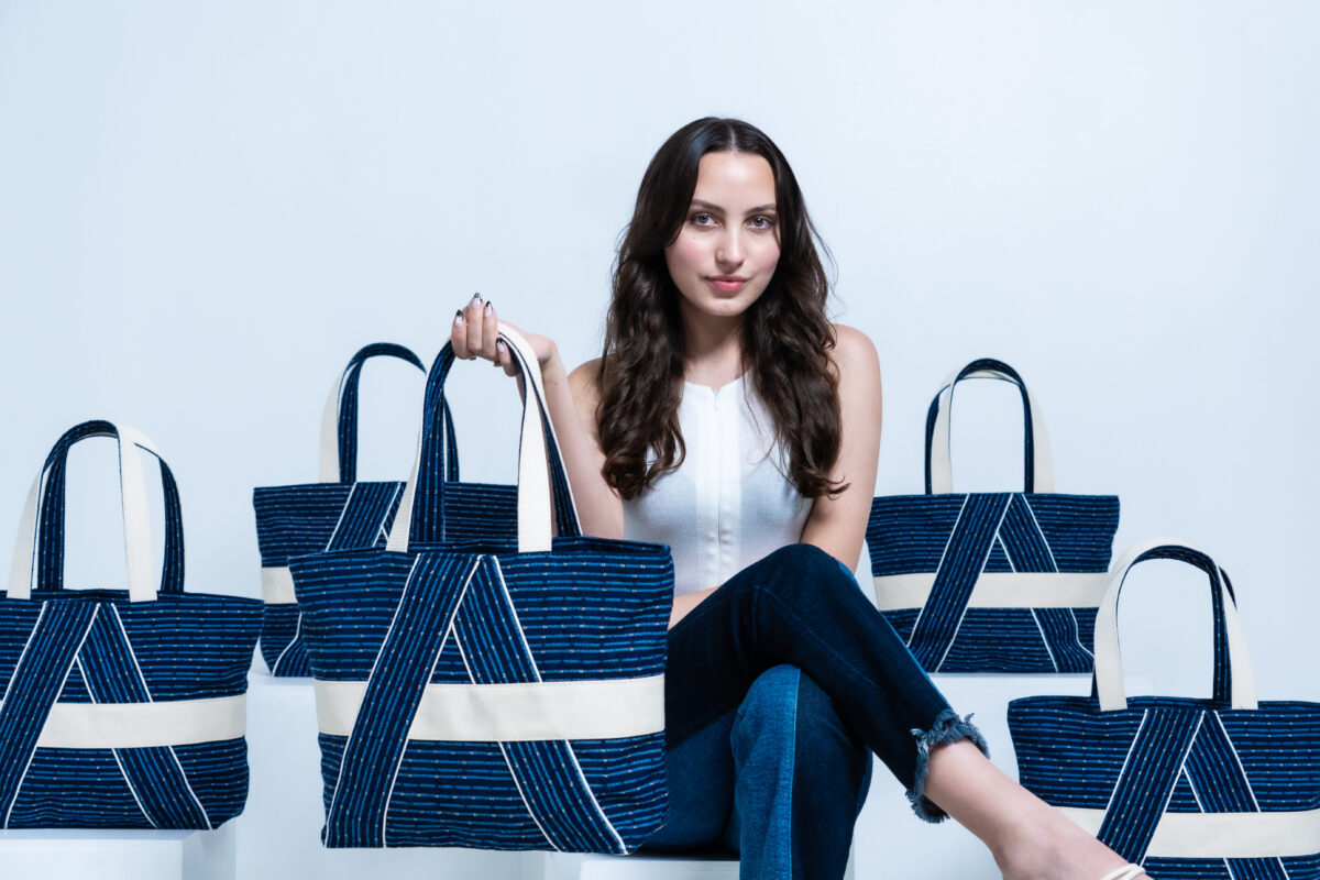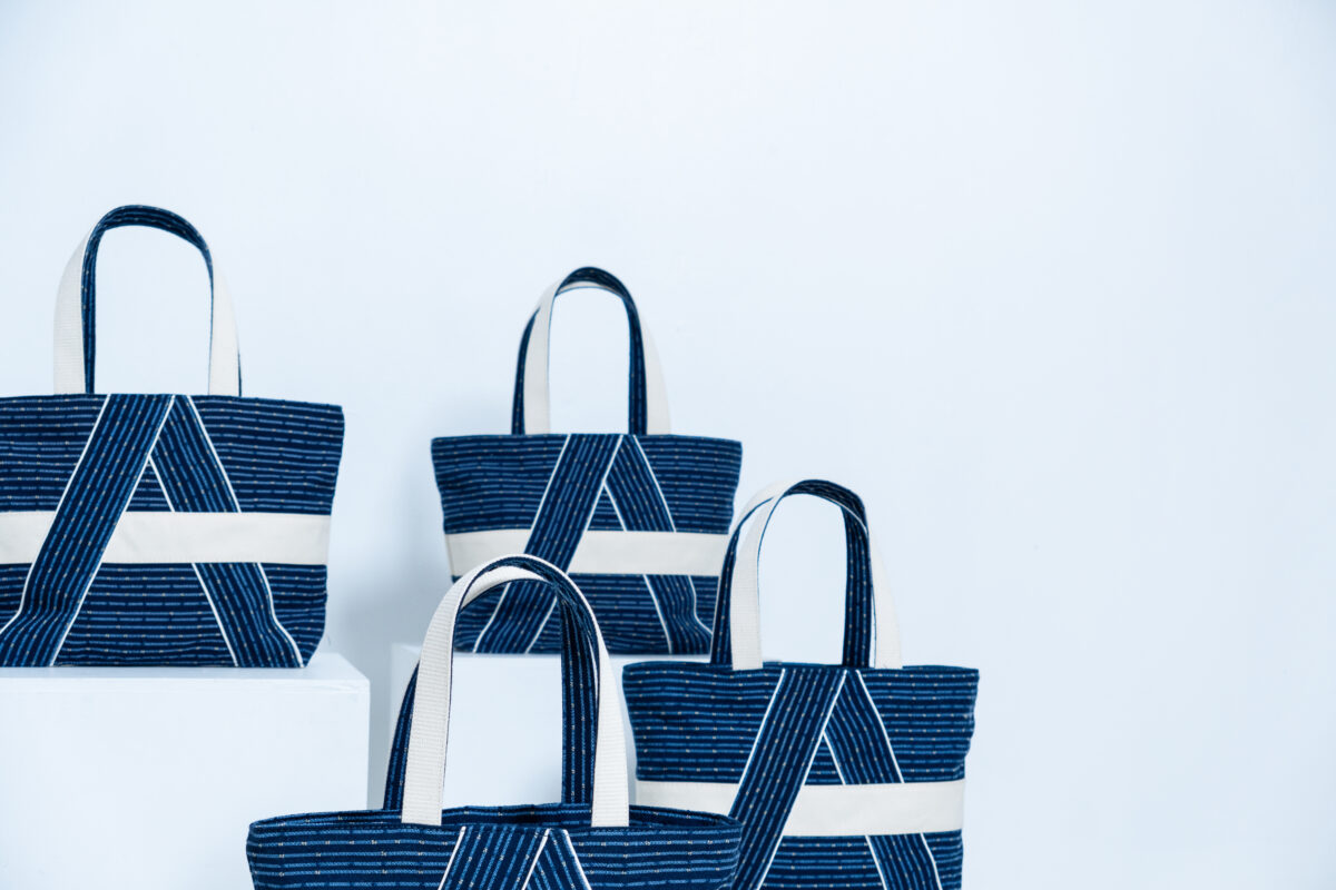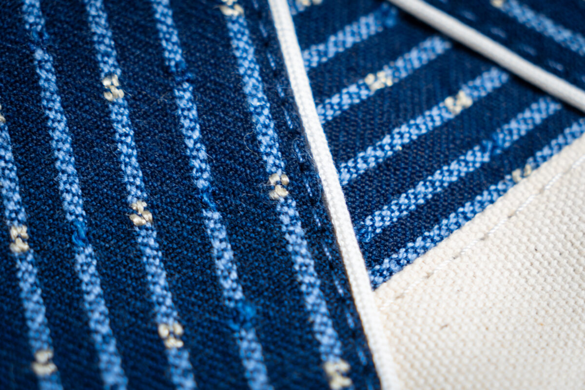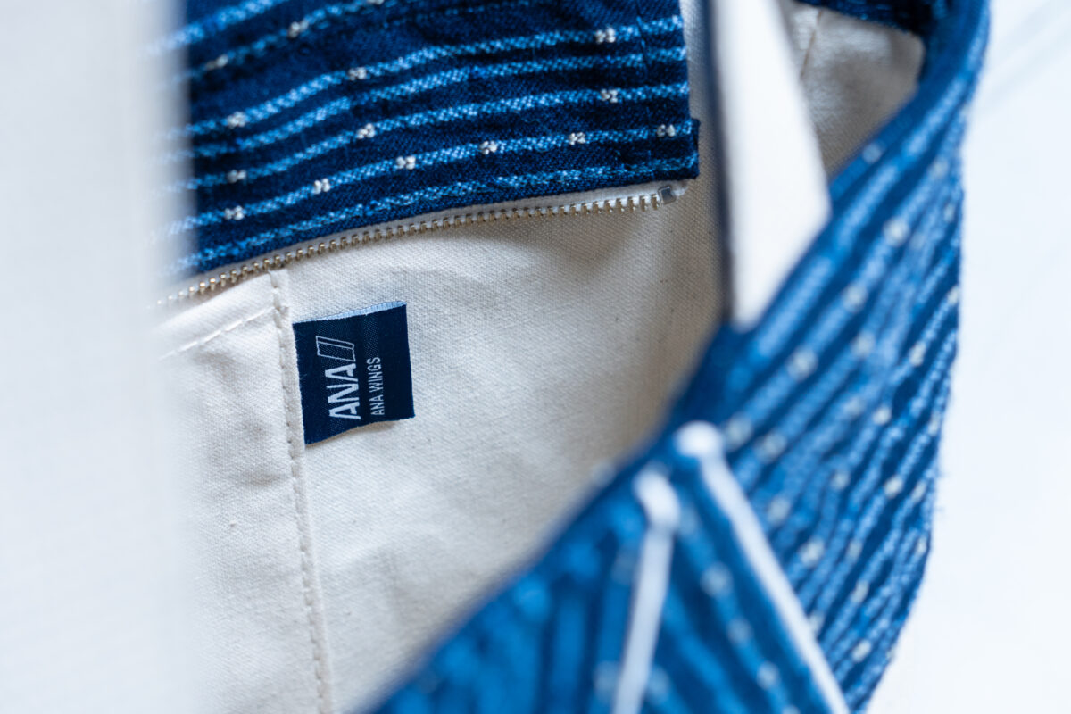 A sustainable bag crafted from repurposed airplane seats.