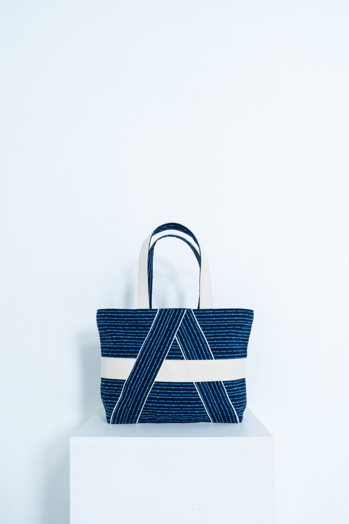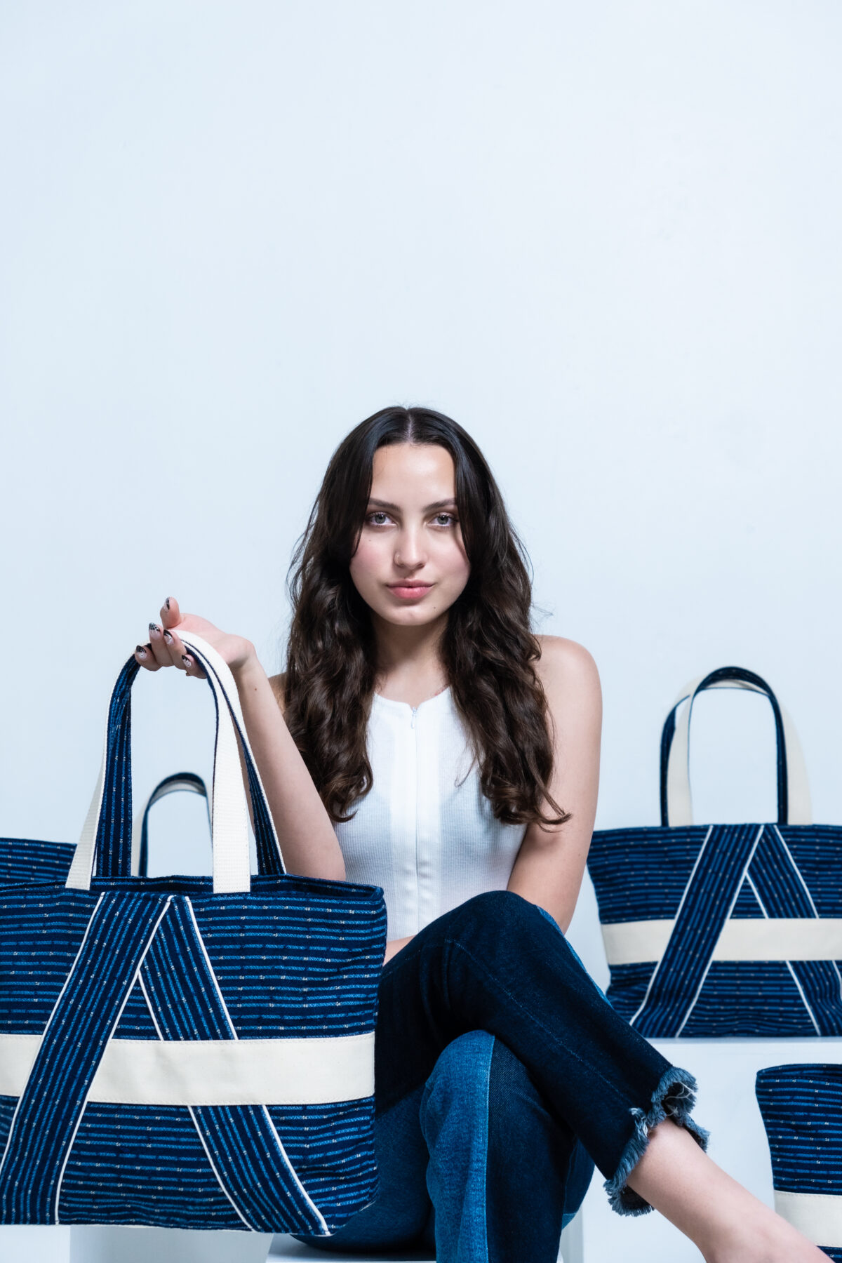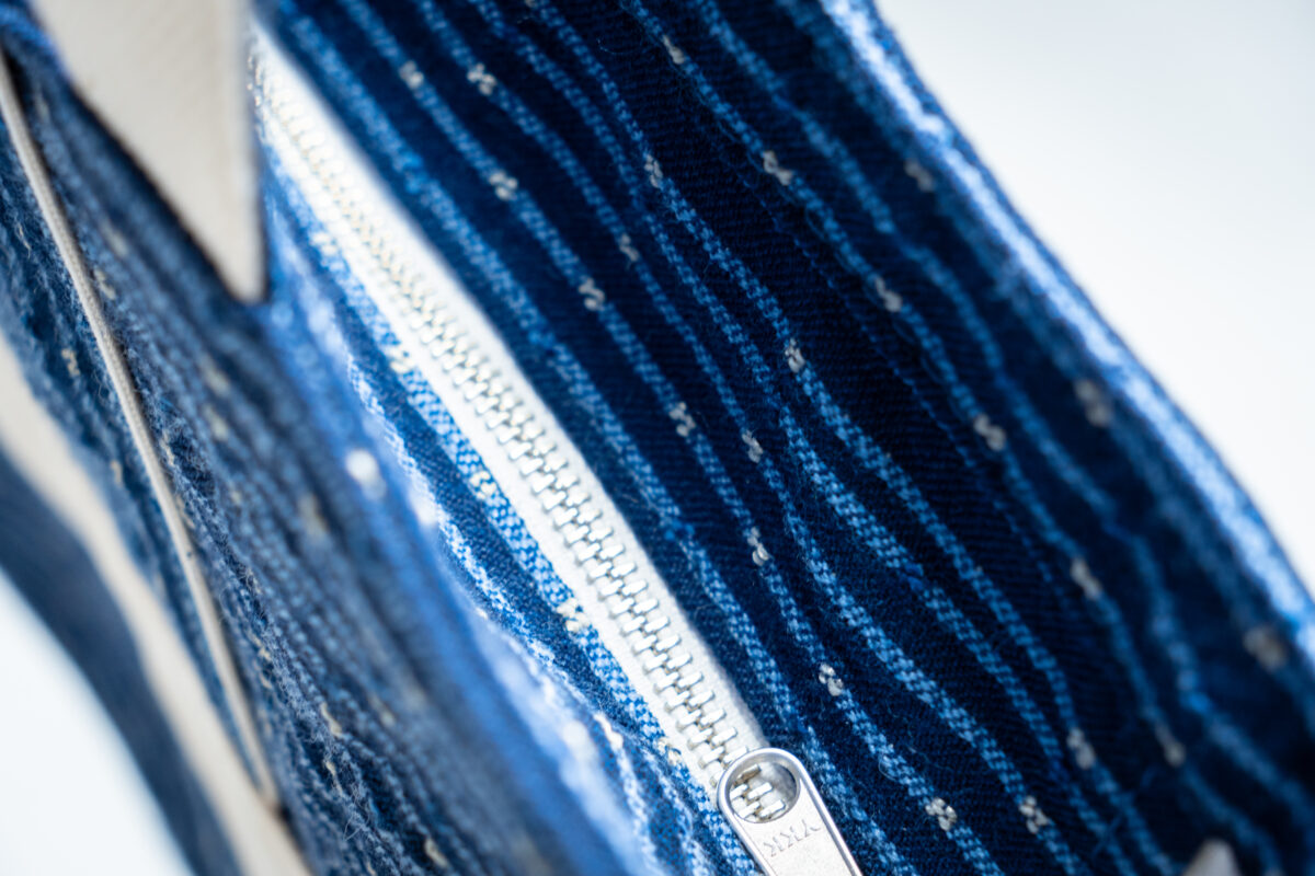 A sustainable bag crafted from repurposed airplane seats.