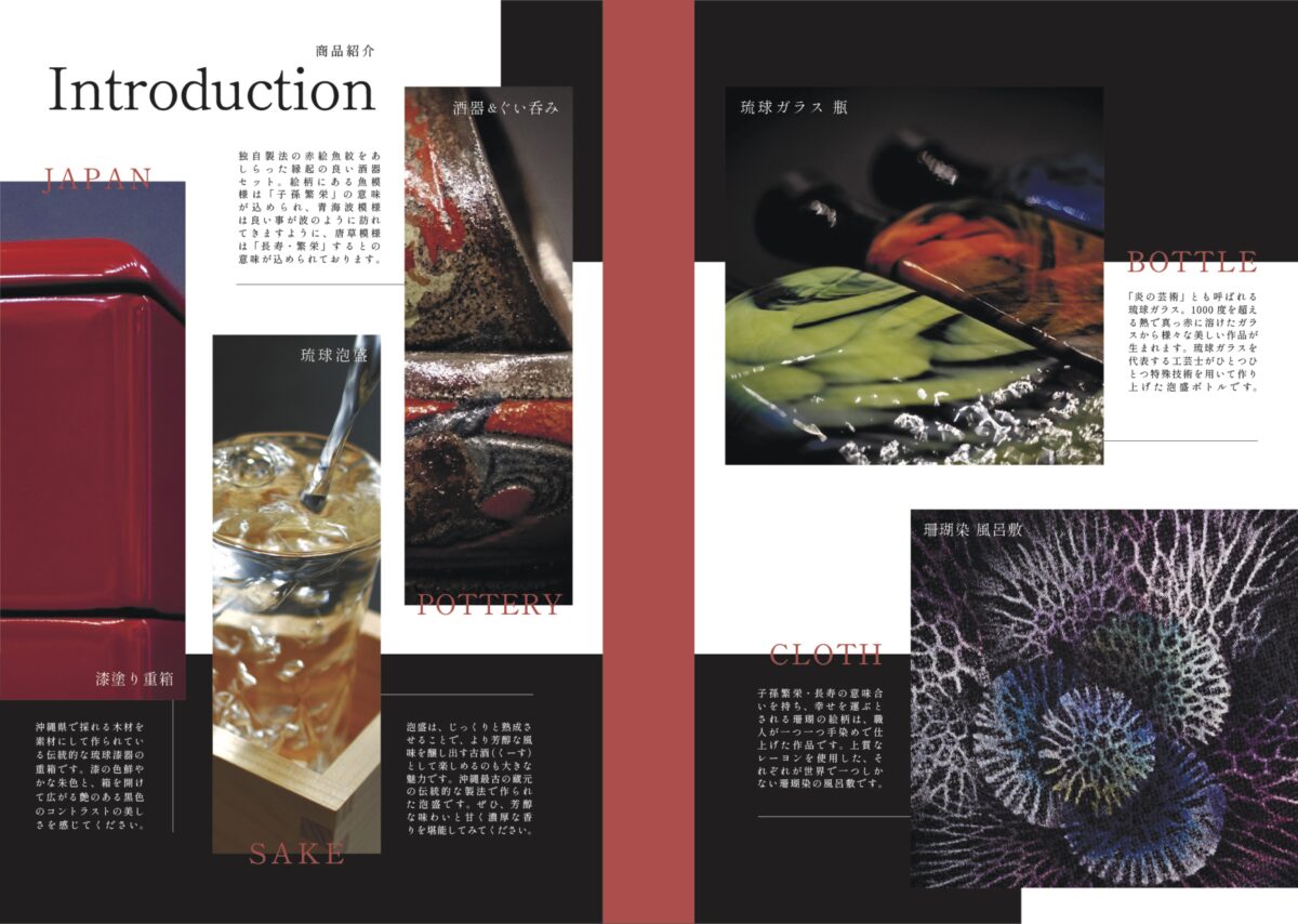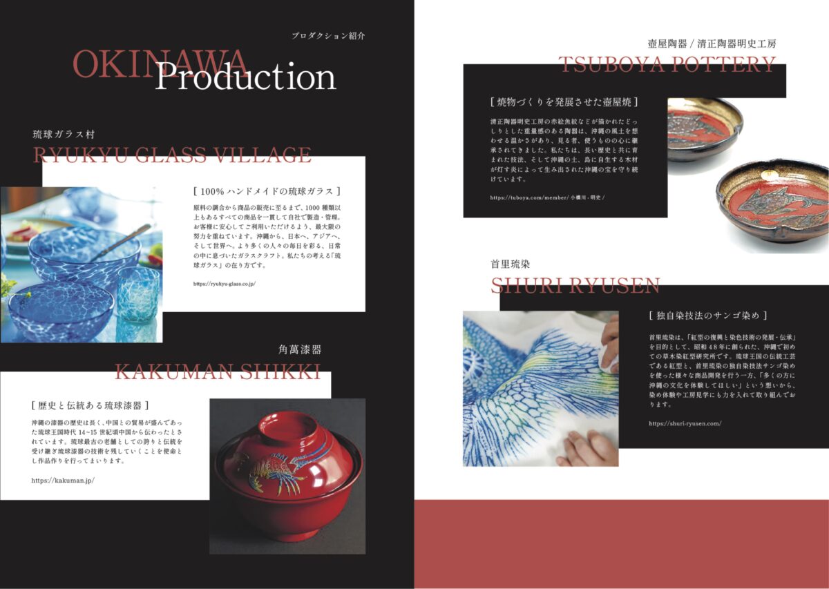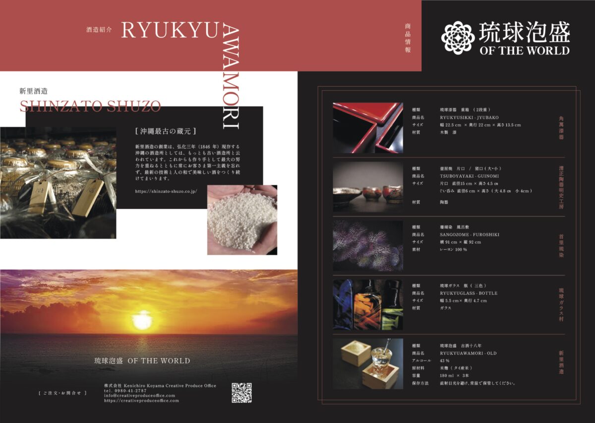 Living in harmony with abundant nature,Okinawa has cultivated its own unique culture while absorbing influences from overseas during the Ryukyu Kingdom era.This heritage is reflected in numerous traditional crafts, each developed through distinctive techniques passed down through generations. These are artistic creations crafted by select artisans of Okinawan traditional crafts—Ryukyu glass,Ryukyu lacquerware, pottery, and coral dyeing—exclusively for “Ryukyu Awamori OF THE WORLD.” This world of refined creation will further enhance the vibrant flavor and profound experience of awamori crafted using Okinawa’s unique methods.The “Ryukyu Awamori OF THE WORLD” project, filled with the beautiful craftsmanship of Okinawa’s artisans, will be a process for discovering new sensibilities, whether for someone special or for yourself.
