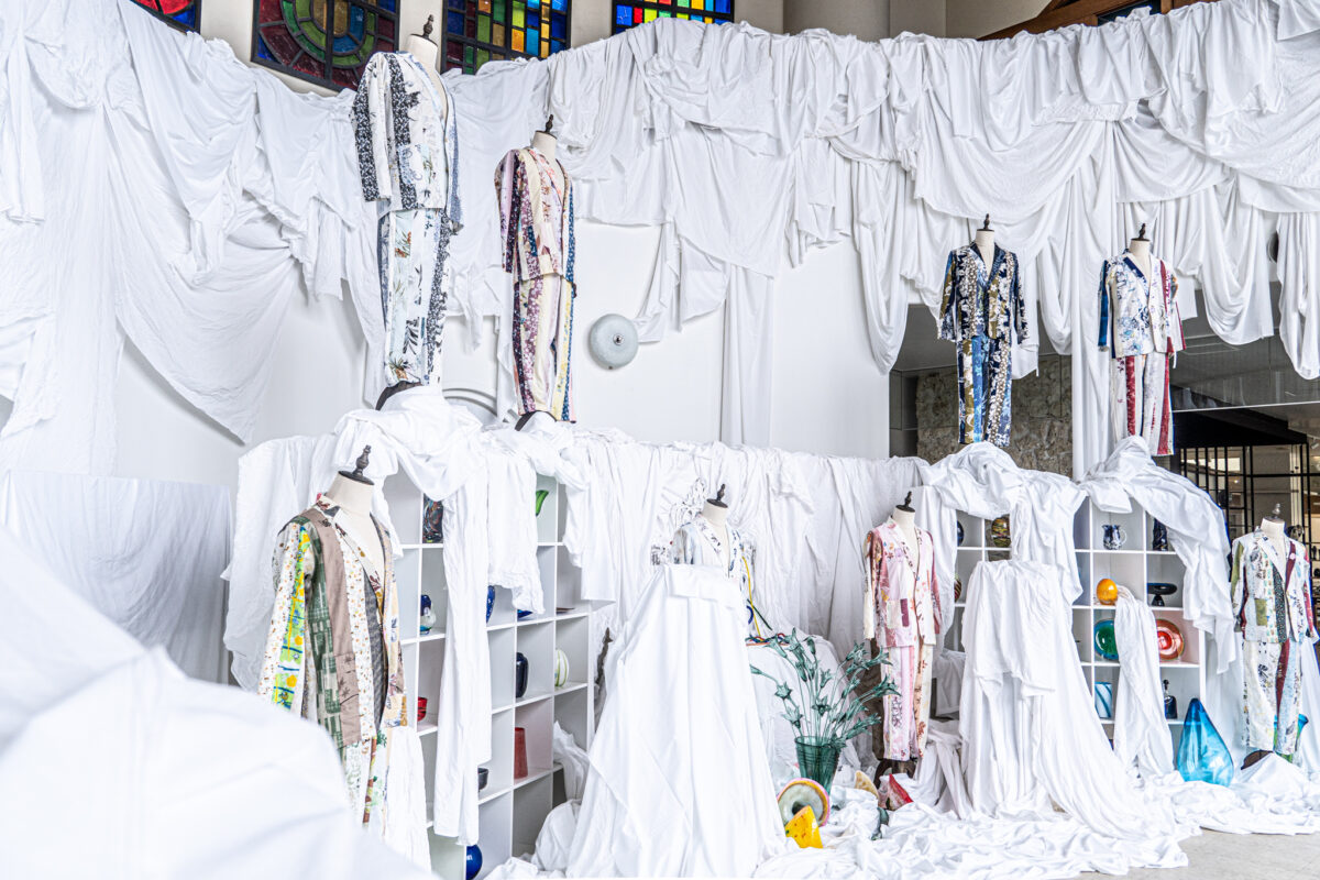 Kenichiro Koyama wearing a suit made from recycled materials in front of collected kariyushi wear at an event = July 25, Urasoe City, San-A Urasoe West Coast Parco City (Provided by Kenichiro Koyama Creative Produce office)[Kunigami/Urasoe] Kenichiro Koyama, owner of “Yanbaru Hostel,” and others held a kariyushi wear collection event at San-A Urasoe West Coast Parco City in Urasoe City for four days from July 22 to 25. This was part of a project to create suits using kariyushi wear slated for disposal.At the event, participants exchanged their brought kariyushi wear for ¥500 worth of San-A gift certificates. A total of 626 pieces were collected during the event period. Combined with additional kariyushi wear brought to the hotel by August 5th, the total collected exceeded 2,000 pieces.Future collection events are planned. Those bringing in 20 or more pieces will be able to purchase one of the suits produced in advance for ¥25,800 (excluding tax). Details for general sales will be announced within the year.Mr. Koyama stated, “I’m delighted that this event reduced clothing disposal and contributed to the global environment. To create a better world, we want to consider future developments, including design and sales methods.” Another collection event is scheduled at Parco City on September 11th and 12th.